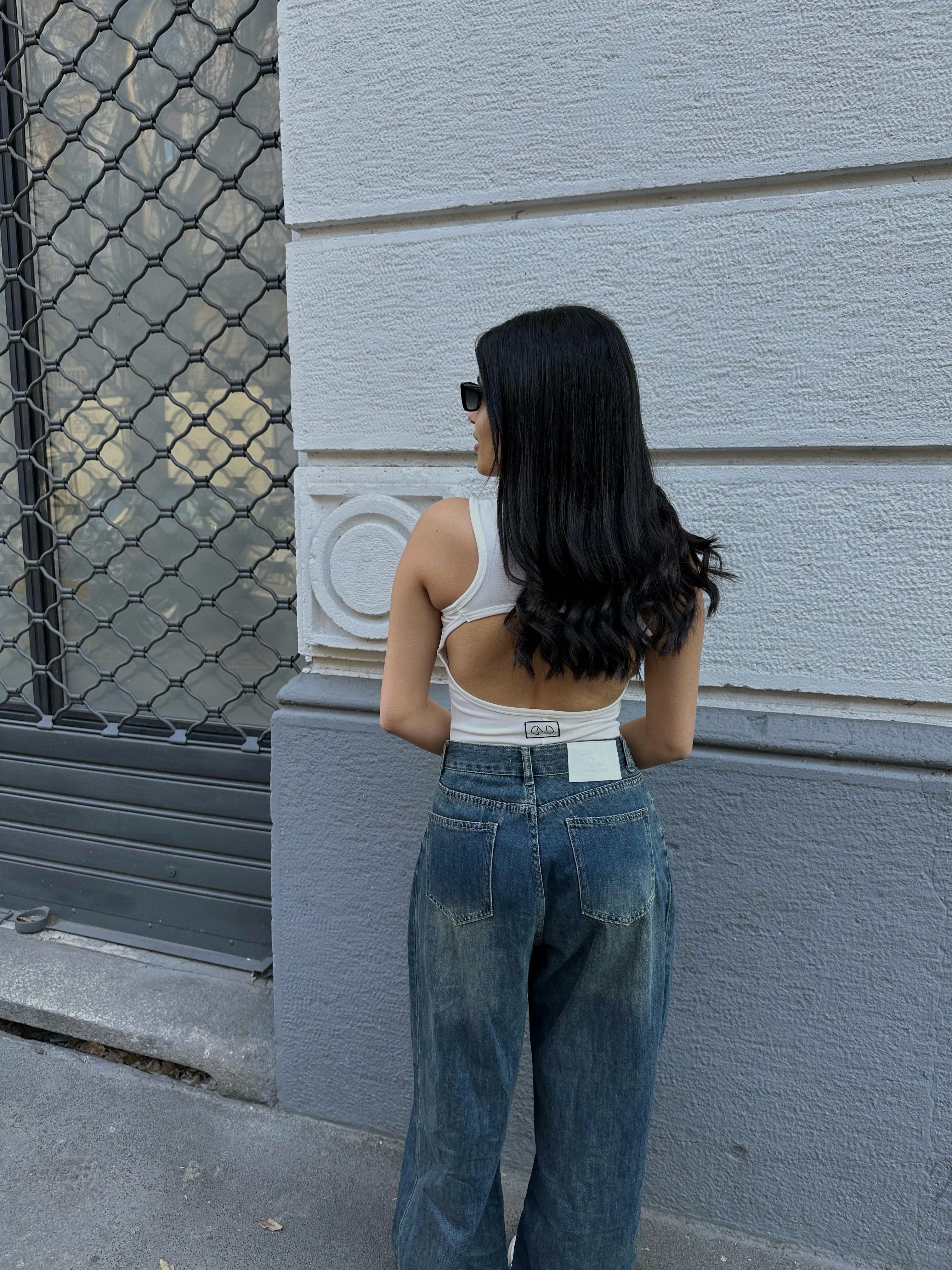 ONART BODYSUIT WITH OPEN BACK WHITE